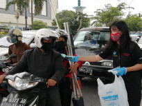 PSMTI Riau, PSMTI Pekanbaru berkolaborasi dengan Binmas Polda Riau & HMI (Himpunan Mahasiswa Islam) Bagko Riau Kepri bersama membagikan masker & hand sanitizer kepada masyarakat yang melintas di sekitar Jl. Soekarno Hatta